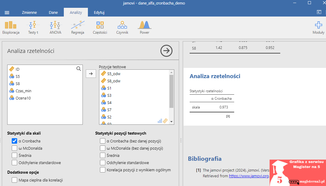 Jak policzyć alfę Cronbacha w Jamovi (krok po kroku)