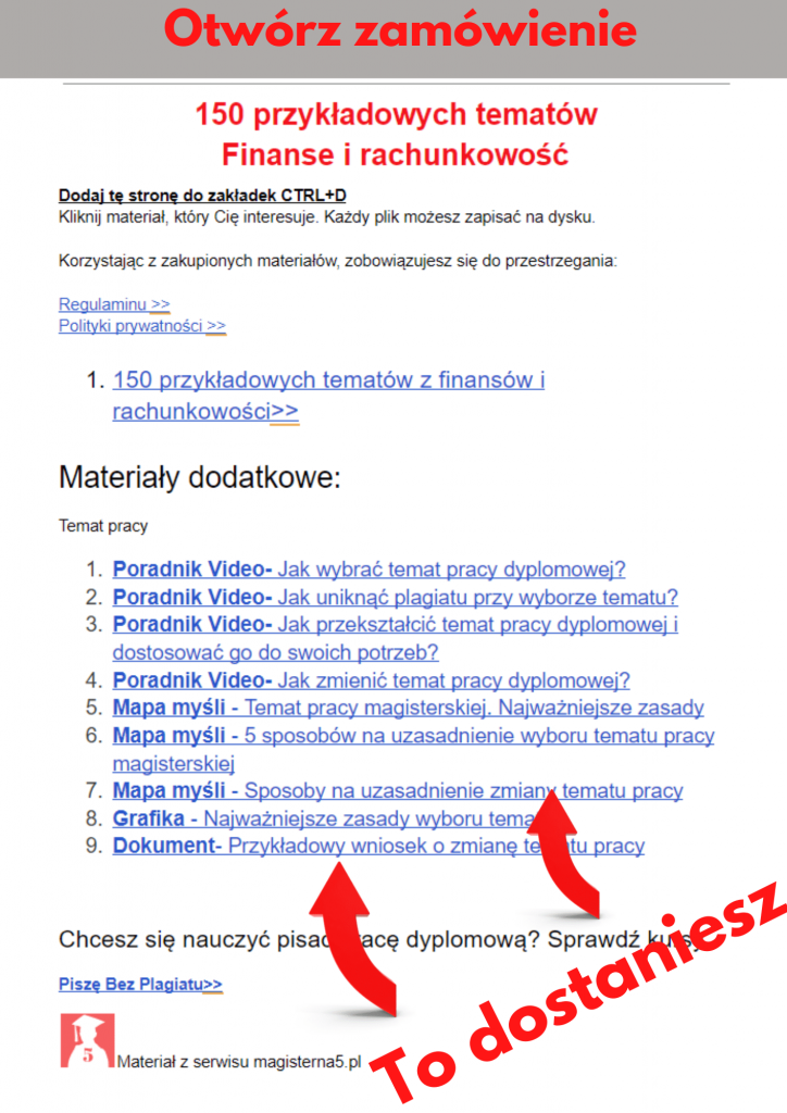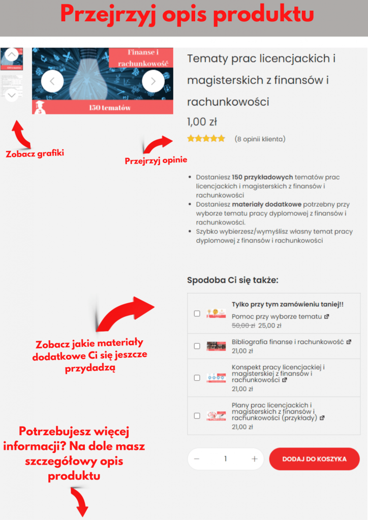 - Opinie. Systematycznie zbieramy opinie od studentów. Dowiesz się tam nie tylko o ocenie produktów. Zauważyłem, że niektórzy studenci, zdradzają ciekawe triki i dzielą się swoimi doświadczeniami z pisaniem pracy. To Ci się bardzo przyda.