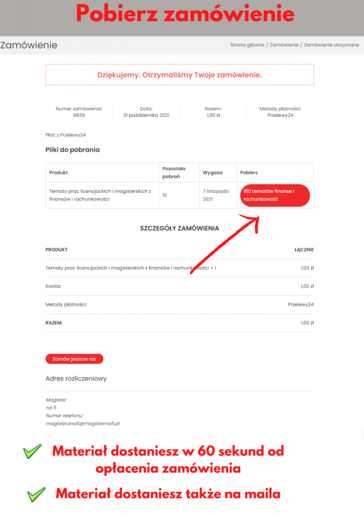 - Sposób dostawy. Po opłaceniu otworzy się specjalna strona z produktem do pobrania. Dostaniesz też zamówienie na maila.